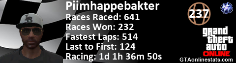 [URL=http://GTAonlinestats.com/showplayer/Piimhappebakter][IMG]http://GTAonlinestats.com/racesignature/Piimhappebakter/sig.png[/IMG][/URL]