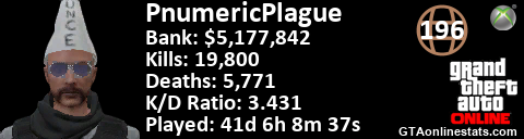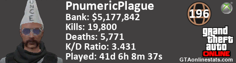 <a href="http://GTAonlinestats.com/showplayer/PnumericPlague"><img src="http://GTAonlinestats.com/dmsignature/PnumericPlague/sig.png" alt="PnumericPlague" border="0" /></a>