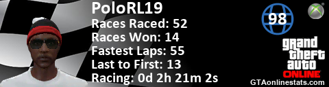 [URL=http://GTAonlinestats.com/showplayer/PoloRL19][IMG]http://GTAonlinestats.com/racesignature/PoloRL19/sig.png[/IMG][/URL]