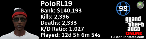 [URL=http://GTAonlinestats.com/showplayer/PoloRL19][IMG]http://GTAonlinestats.com/signature/PoloRL19/sig.png[/IMG][/URL]