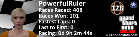 [URL=http://GTAonlinestats.com/showplayer/PowerfulRuler/2][IMG]http://GTAonlinestats.com/racesignature/PowerfulRuler/2/sig.png[/IMG][/URL]