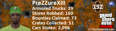 [URL=http://GTAonlinestats.com/showplayer/PreZZureXIII][IMG]http://GTAonlinestats.com/randomsignature/PreZZureXIII/sig.png[/IMG][/URL]