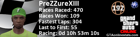 [URL=http://GTAonlinestats.com/showplayer/PreZZureXIII][IMG]http://GTAonlinestats.com/racesignature/PreZZureXIII/sig.png[/IMG][/URL]
