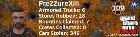 [URL=http://GTAonlinestats.com/showplayer/PreZZureXIII/2][IMG]http://GTAonlinestats.com/crimesignature/PreZZureXIII/2/sig.png[/IMG][/URL]