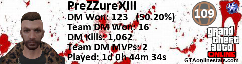 [URL=http://GTAonlinestats.com/showplayer/PreZZureXIII/2][IMG]http://GTAonlinestats.com/signature/PreZZureXIII/2/sig.png[/IMG][/URL]