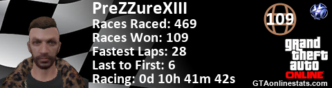 [URL=http://GTAonlinestats.com/showplayer/PreZZureXIII/2][IMG]http://GTAonlinestats.com/racesignature/PreZZureXIII/2/sig.png[/IMG][/URL]