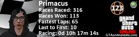 <a href="http://GTAonlinestats.com/showplayer/Primacus"><img src="http://GTAonlinestats.com/racesignature/Primacus/sig.png" alt="Primacus" border="0" /></a>