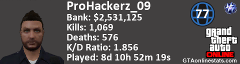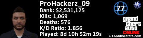 [URL=http://GTAonlinestats.com/showplayer/ProHackerz_09][IMG]http://GTAonlinestats.com/signature/ProHackerz_09/sig.png[/IMG][/URL]