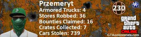 [URL=http://GTAonlinestats.com/showplayer/Przemeryt][IMG]http://GTAonlinestats.com/crimesignature/Przemeryt/sig.png[/IMG][/URL]