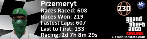 <a href="http://GTAonlinestats.com/showplayer/Przemeryt"><img src="http://GTAonlinestats.com/racesignature/Przemeryt/sig.png" alt="Przemeryt" border="0" /></a>