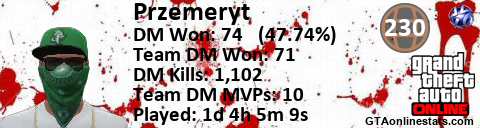 [URL=http://GTAonlinestats.com/showplayer/Przemeryt][IMG]http://GTAonlinestats.com/dmsignature/Przemeryt/sig.png[/IMG][/URL]