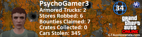 [URL=http://GTAonlinestats.com/showplayer/PsychoGamer3][IMG]http://GTAonlinestats.com/crimesignature/PsychoGamer3/sig.png[/IMG][/URL]