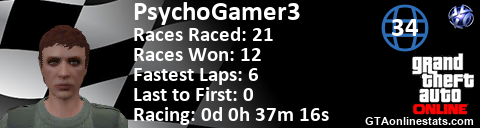 <a href="http://GTAonlinestats.com/showplayer/PsychoGamer3"><img src="http://GTAonlinestats.com/racesignature/PsychoGamer3/sig.png" alt="PsychoGamer3" border="0" /></a>