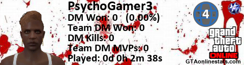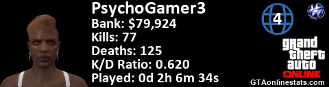 [URL=http://GTAonlinestats.com/showplayer/PsychoGamer3/2][IMG]http://GTAonlinestats.com/signature/PsychoGamer3/2/sig.png[/IMG][/URL]