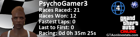 [URL=http://GTAonlinestats.com/showplayer/PsychoGamer3/2][IMG]http://GTAonlinestats.com/racesignature/PsychoGamer3/2/sig.png[/IMG][/URL]