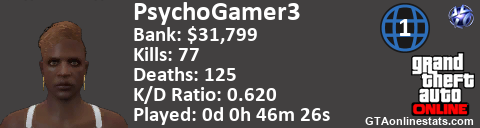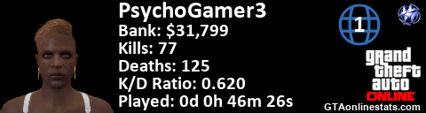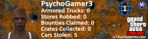 [URL=http://GTAonlinestats.com/showplayer/PsychoGamer3/3][IMG]http://GTAonlinestats.com/signature/PsychoGamer3/3/sig.png[/IMG][/URL]
