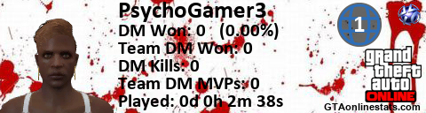 [URL=http://GTAonlinestats.com/showplayer/PsychoGamer3/3][IMG]http://GTAonlinestats.com/dmsignature/PsychoGamer3/3/sig.png[/IMG][/URL]