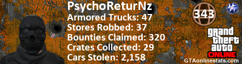 [URL=http://GTAonlinestats.com/showplayer/PsychoReturNz][IMG]http://GTAonlinestats.com/randomsignature/PsychoReturNz/sig.png[/IMG][/URL]