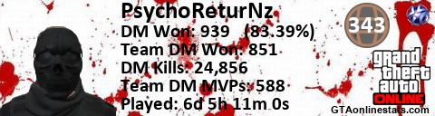 [URL=http://GTAonlinestats.com/showplayer/PsychoReturNz][IMG]http://GTAonlinestats.com/dmsignature/PsychoReturNz/sig.png[/IMG][/URL]