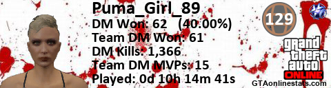 [URL=http://GTAonlinestats.com/showplayer/Puma_Girl_89][IMG]http://GTAonlinestats.com/signature/Puma_Girl_89/sig.png[/IMG][/URL]