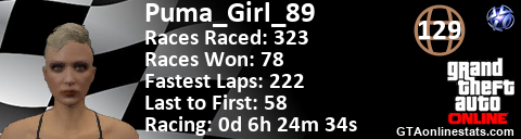 [URL=http://GTAonlinestats.com/showplayer/Puma_Girl_89][IMG]http://GTAonlinestats.com/racesignature/Puma_Girl_89/sig.png[/IMG][/URL]