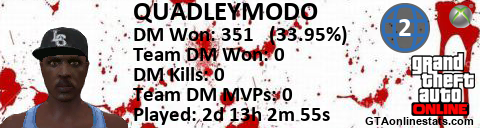[URL=http://GTAonlinestats.com/showplayer/QUADLEYMODO/2][IMG]http://GTAonlinestats.com/dmsignature/QUADLEYMODO/2/sig.png[/IMG][/URL]
