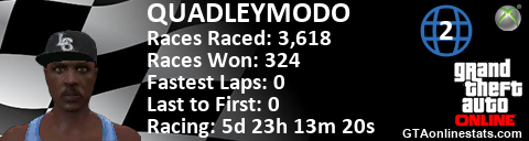 <a href="http://GTAonlinestats.com/showplayer/QUADLEYMODO/2"><img src="http://GTAonlinestats.com/racesignature/QUADLEYMODO/2/sig.png" alt="QUADLEYMODO" border="0" /></a>