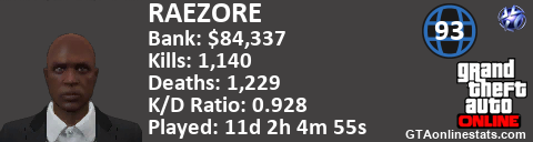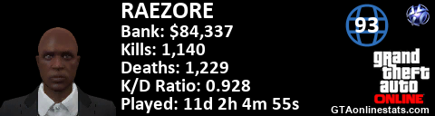 <a href="http://GTAonlinestats.com/showplayer/RAEZORE"><img src="http://GTAonlinestats.com/randomsignature/RAEZORE/sig.png" alt="Raezore" border="0" /></a>