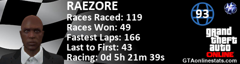 <a href="http://GTAonlinestats.com/showplayer/RAEZORE"><img src="http://GTAonlinestats.com/racesignature/RAEZORE/sig.png" alt="Raezore" border="0" /></a>