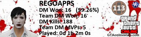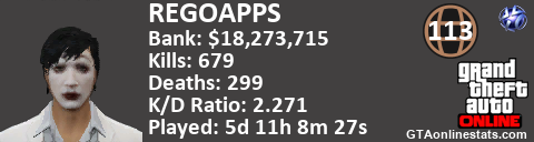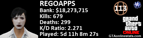 [URL=http://GTAonlinestats.com/showplayer/REGOAPPS][IMG]http://GTAonlinestats.com/dmsignature/REGOAPPS/sig.png[/IMG][/URL]