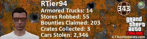 [URL=http://GTAonlinestats.com/showplayer/RTier94][IMG]http://GTAonlinestats.com/crimesignature/RTier94/sig.png[/IMG][/URL]