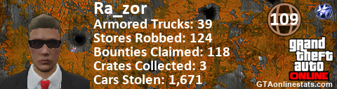 <a href="http://GTAonlinestats.com/showplayer/Ra_zor"><img src="http://GTAonlinestats.com/signature/Ra_zor/sig.png" alt="Ra_zor" border="0" /></a>