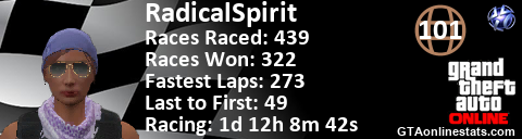 [URL=http://GTAonlinestats.com/showplayer/RadicalSpirit/2][IMG]http://GTAonlinestats.com/racesignature/RadicalSpirit/2/sig.png[/IMG][/URL]