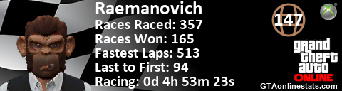 [URL=http://GTAonlinestats.com/showplayer/Raemanovich][IMG]http://GTAonlinestats.com/racesignature/Raemanovich/sig.png[/IMG][/URL]