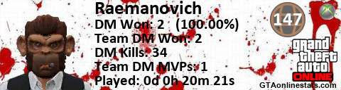 [URL=http://GTAonlinestats.com/showplayer/Raemanovich][IMG]http://GTAonlinestats.com/dmsignature/Raemanovich/sig.png[/IMG][/URL]