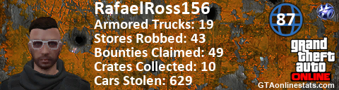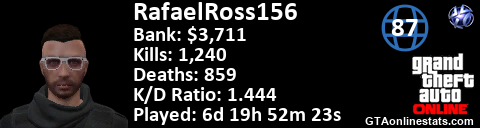 <a href="http://GTAonlinestats.com/showplayer/RafaelRoss156"><img src="http://GTAonlinestats.com/crimesignature/RafaelRoss156/sig.png" alt="RafaelRoss156" border="0" /></a>