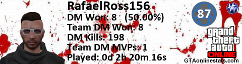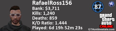 <a href="http://GTAonlinestats.com/showplayer/RafaelRoss156"><img src="http://GTAonlinestats.com/signature/RafaelRoss156/sig.png" alt="RafaelRoss156" border="0" /></a>