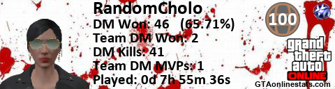 [URL=http://GTAonlinestats.com/showplayer/RandomCholo/2][IMG]http://GTAonlinestats.com/dmsignature/RandomCholo/2/sig.png[/IMG][/URL]