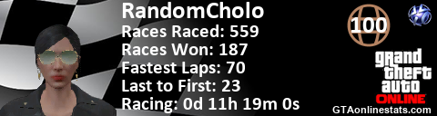 [URL=http://GTAonlinestats.com/showplayer/RandomCholo/2][IMG]http://GTAonlinestats.com/racesignature/RandomCholo/2/sig.png[/IMG][/URL]