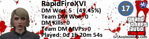 <a href="http://GTAonlinestats.com/showplayer/RapidFireXVI"><img src="http://GTAonlinestats.com/dmsignature/RapidFireXVI/sig.png" alt="RapidFireXVI" border="0" /></a>