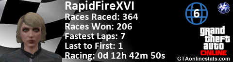 <a href="http://GTAonlinestats.com/showplayer/RapidFireXVI/3"><img src="http://GTAonlinestats.com/racesignature/RapidFireXVI/3/sig.png" alt="RapidFireXVI" border="0" /></a>