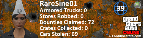 [URL=http://GTAonlinestats.com/showplayer/RareSine01][IMG]http://GTAonlinestats.com/crimesignature/RareSine01/sig.png[/IMG][/URL]