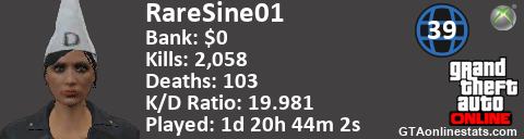 <a href="http://GTAonlinestats.com/showplayer/RareSine01"><img src="http://GTAonlinestats.com/dmsignature/RareSine01/sig.png" alt="RareSine01" border="0" /></a>