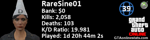 <a href="http://GTAonlinestats.com/showplayer/RareSine01"><img src="http://GTAonlinestats.com/signature/RareSine01/sig.png" alt="RareSine01" border="0" /></a>
