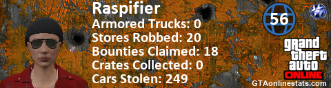 [URL=http://GTAonlinestats.com/showplayer/Raspifier][IMG]http://GTAonlinestats.com/crimesignature/Raspifier/sig.png[/IMG][/URL]