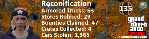 [URL=http://GTAonlinestats.com/showplayer/Reconification][IMG]http://GTAonlinestats.com/crimesignature/Reconification/sig.png[/IMG][/URL]