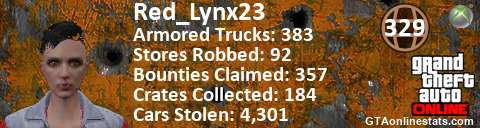 [URL=http://GTAonlinestats.com/showplayer/Red_Lynx23][IMG]http://GTAonlinestats.com/crimesignature/Red_Lynx23/sig.png[/IMG][/URL]
