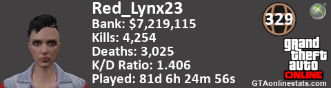 [URL=http://GTAonlinestats.com/showplayer/Red_Lynx23][IMG]http://GTAonlinestats.com/signature/Red_Lynx23/sig.png[/IMG][/URL]