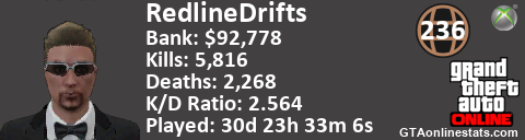 <a href="http://GTAonlinestats.com/showplayer/RedlineDrifts"><img src="http://GTAonlinestats.com/dmsignature/RedlineDrifts/sig.png" alt="RedlineDrifts" border="0" /></a>