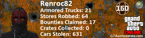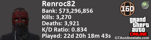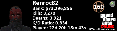 [URL=http://GTAonlinestats.com/showplayer/Renroc82][IMG]http://GTAonlinestats.com/signature/Renroc82/sig.png[/IMG][/URL]